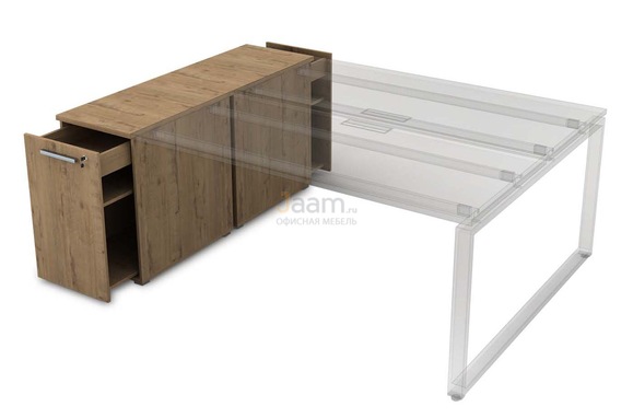 Офисная тумба с выкатной секцией 9ТП.012.2 №36241 - столешница: лдсп 25 мм, кромка: пвх, стекло: матовое.ШxГxВ | 163х45х75 |