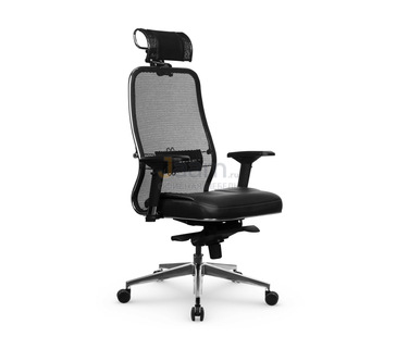 Кресло для руководителя SAMURAI S-3.05 MPES ЧЕРНЫЙ ПЛЮС №51209 - механизм качания без фиксации, регулировка жесткости качания по весу сидящего, ограничения по весу: 120 кг, основание: металл, каркас: немонолитный, производитель: россия и снг, подголовник, подлокотники, поясничный упор, регулировка по высоте, регулируемые подлокотники, резиновые колеса для паркета, сетка в сидении, сетка в спинке, синхромеханизм, в наличии в Кирове.